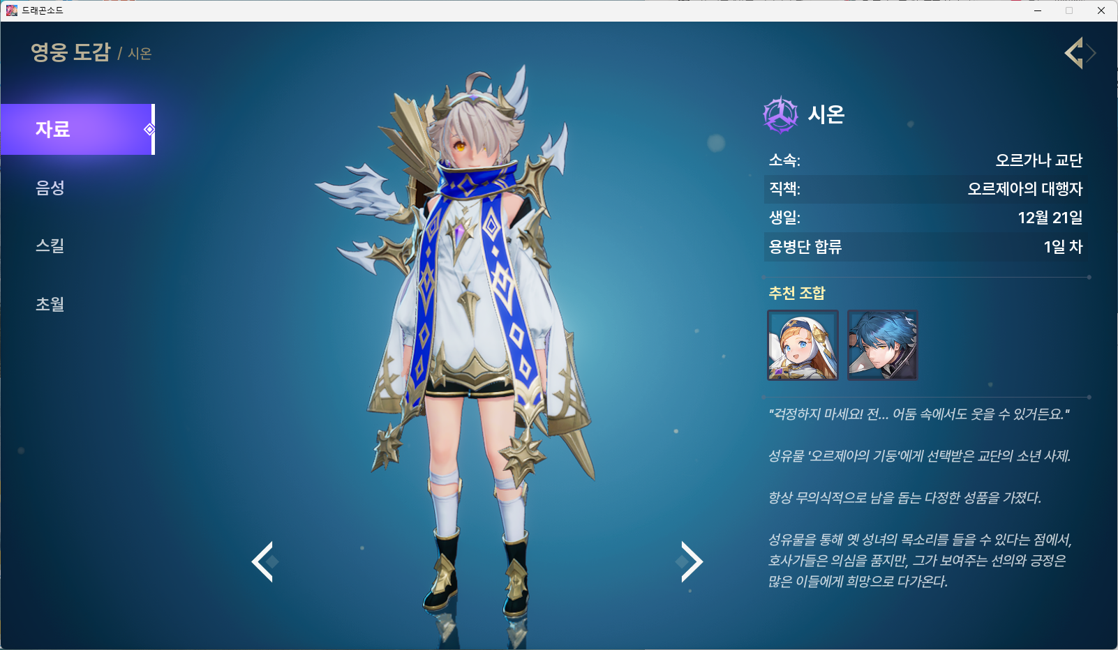 기본 캐릭터인 아리아랑 시그널 합도 좋습니다.