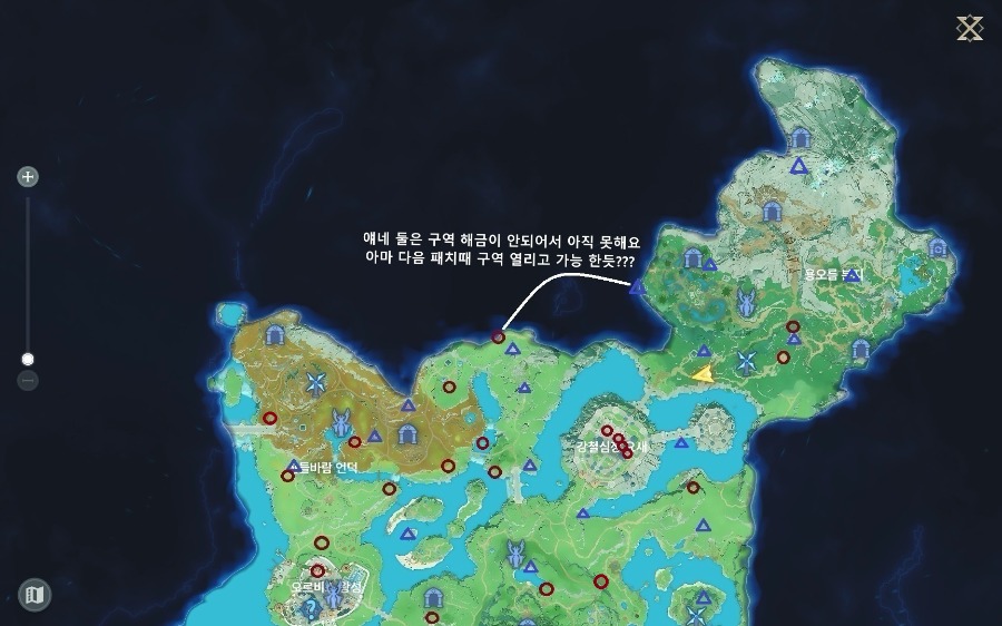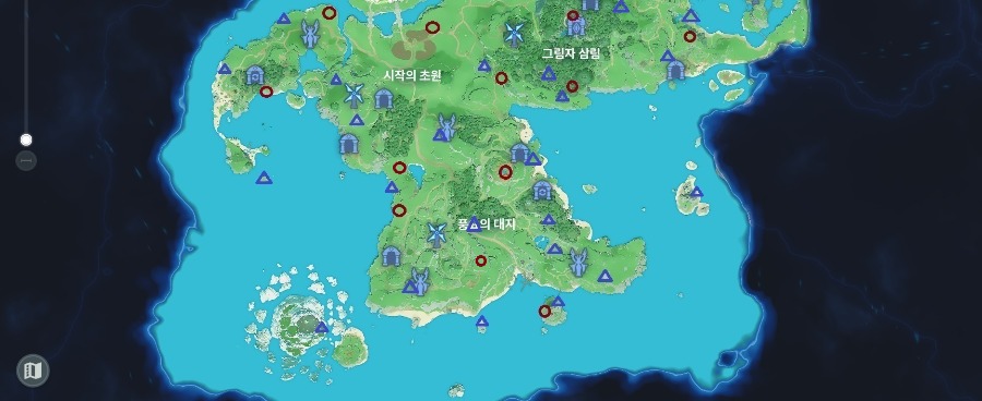 파란 세모가 퍼즐 위치이고 빨간 동그라미가 마멋 위치입니다.