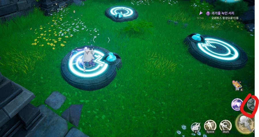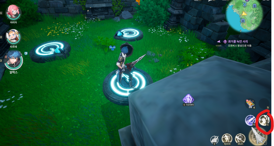 다른 퍼즐로 바로 이동해서 타르테에 e스킬을 쓰면 뒤로 점프를하면서 제자리에 몇초동안남게됩니다 그럼 마지막으로 아리아로 빠르게 바꿔주면서 3캐릭터가 기믹을 성공하게됩니다!!!
