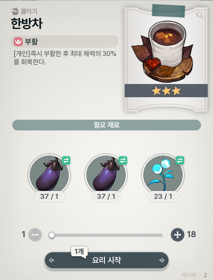 채소 2개랑 약초 하나 넣고 끓이면 만들어짐