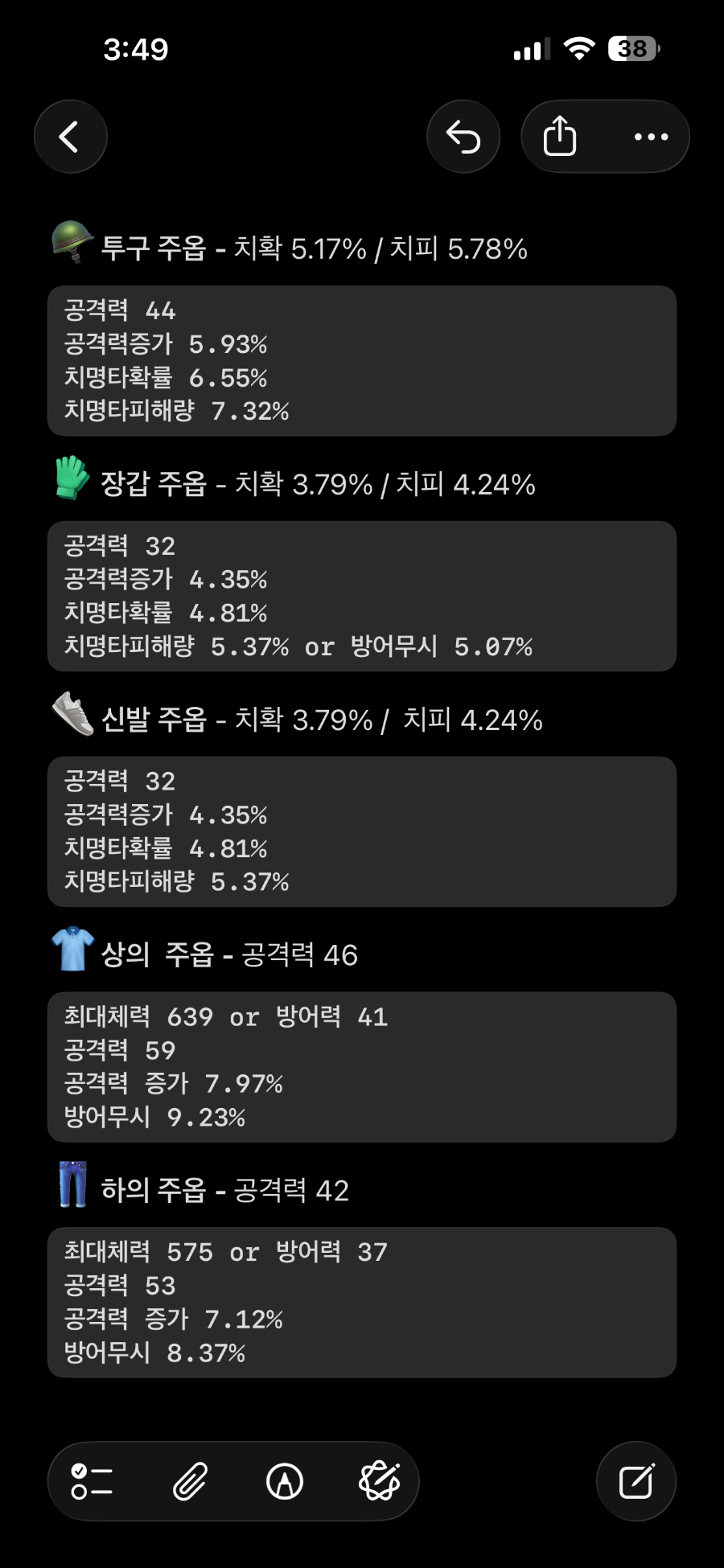 + 장비 주옵, 부옵 1티어 수치 입니다 제대로 맞추실 분들은 참고하세요!