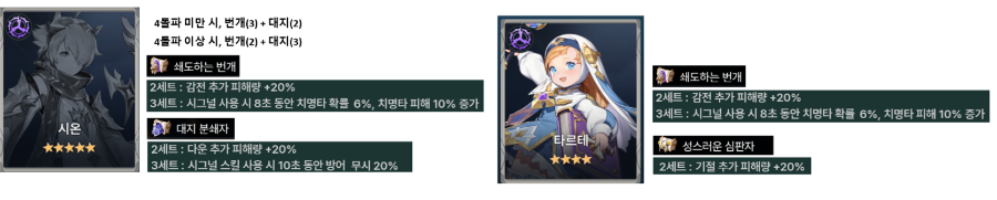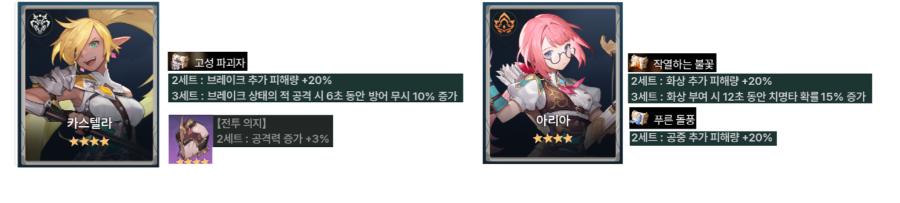 카스텔라는 기절 2세트에 대지분쇄자(다운)3세트 해야 맞는거 같습니다. 시그널스킬이 주 딜량이기에