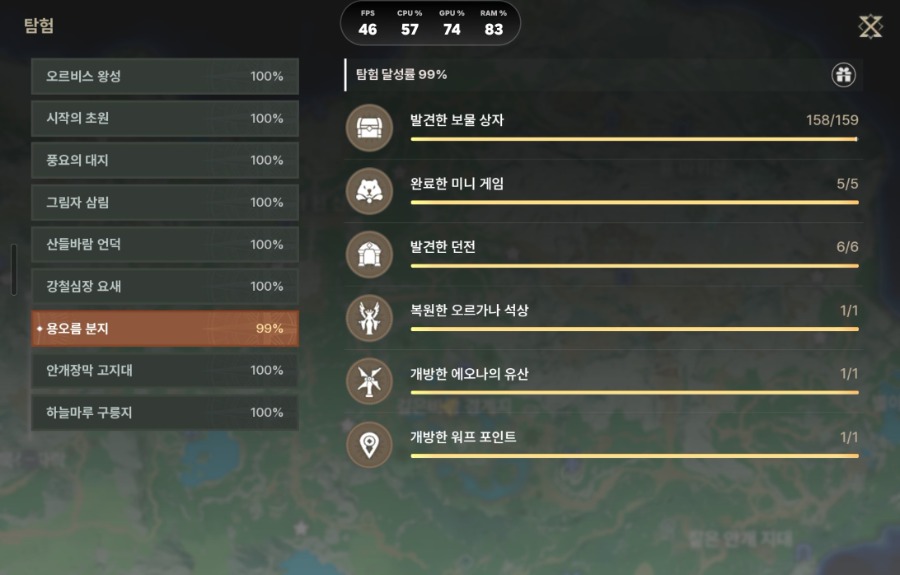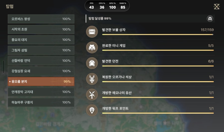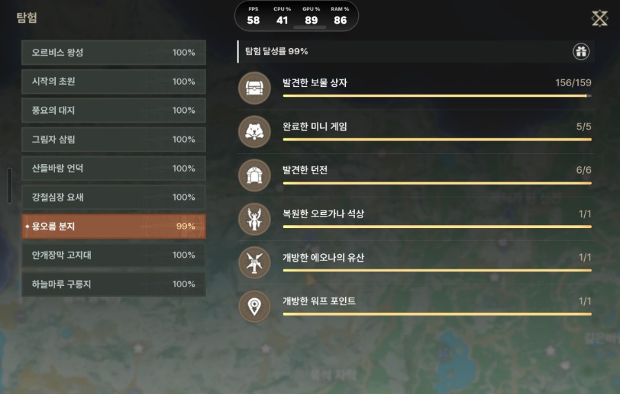보물상자 맵 올 100% 향한 여정... 도파민, 맵스 ㅎㅎ 용오름 분지 보물상자 1개 남