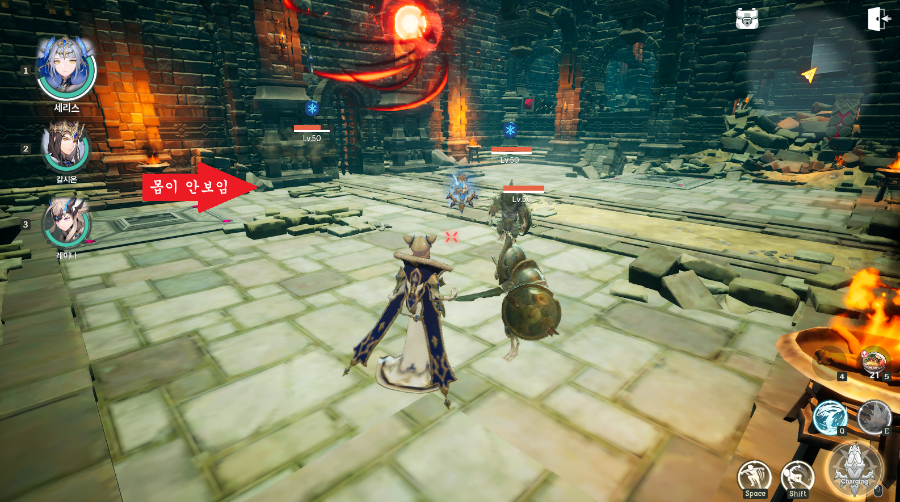 첫번째 3마리 잡고 2번째 3마리 나올 때 도끼 던지는 몹이 100%는 아니고 간헐적으로 저렇게 투명해지네요