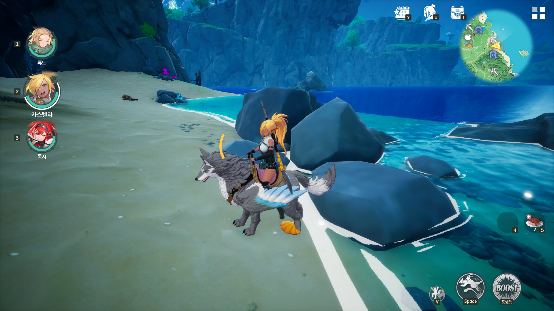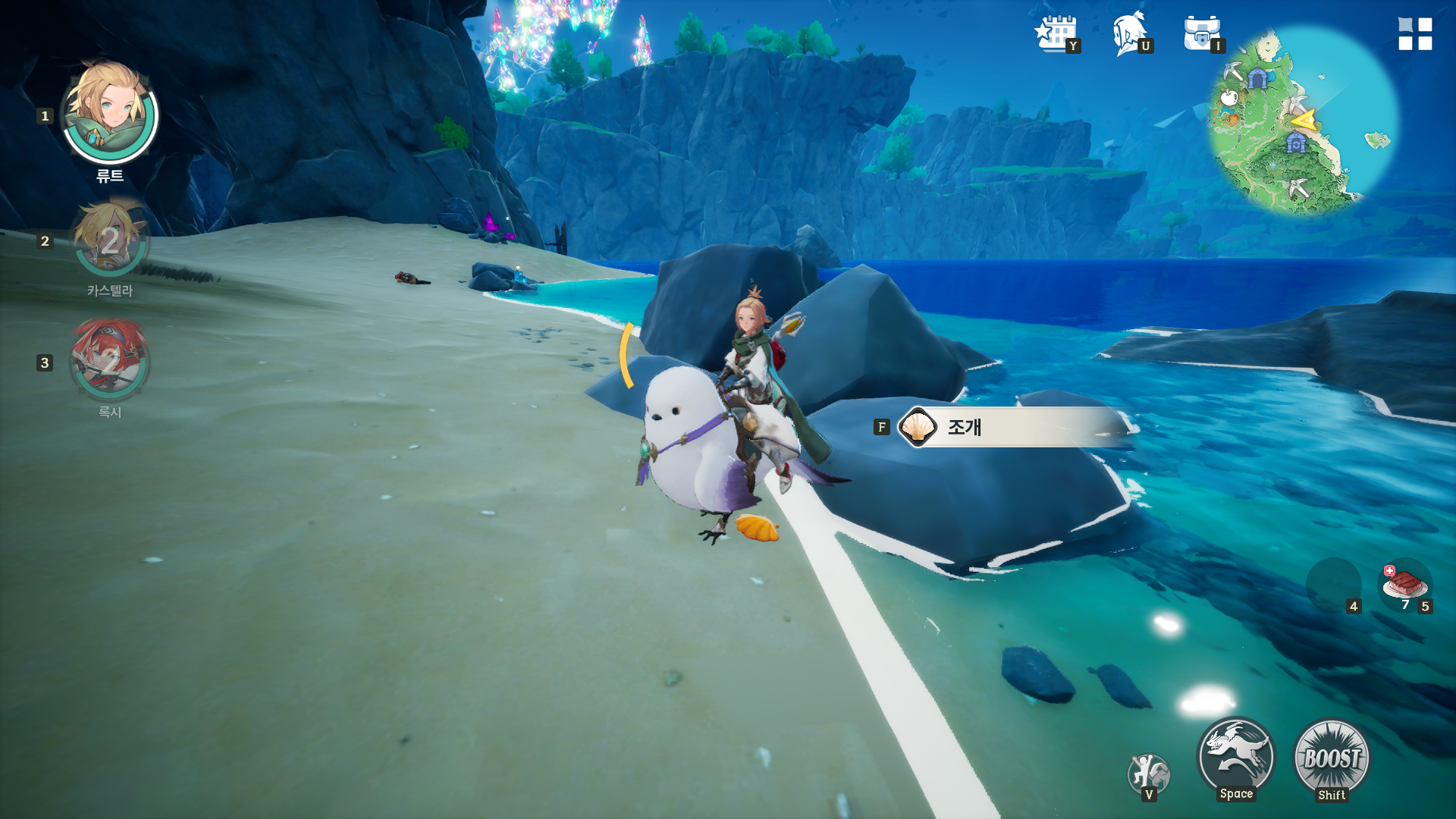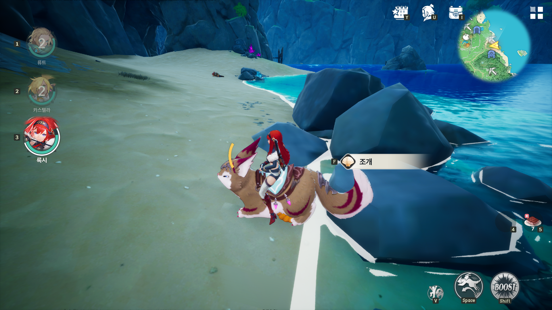 하늘 늑대 퍼밀리어 탑승 시, 조개 아이템 획득이 불가하여 찾아주셨어요.