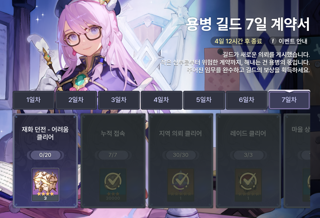 용병 길드 7일 계약서 이벤트와 관련하여 말씀해 주셨어요.