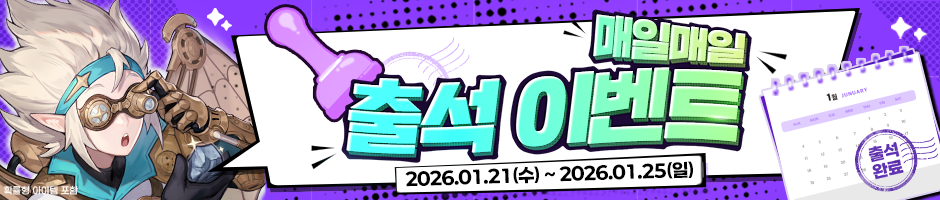 - 매일매일 업데이트되는 출석 이벤트 게시글에 댓글을 남겨 주시면 추첨을 통해 선물을 드려요!