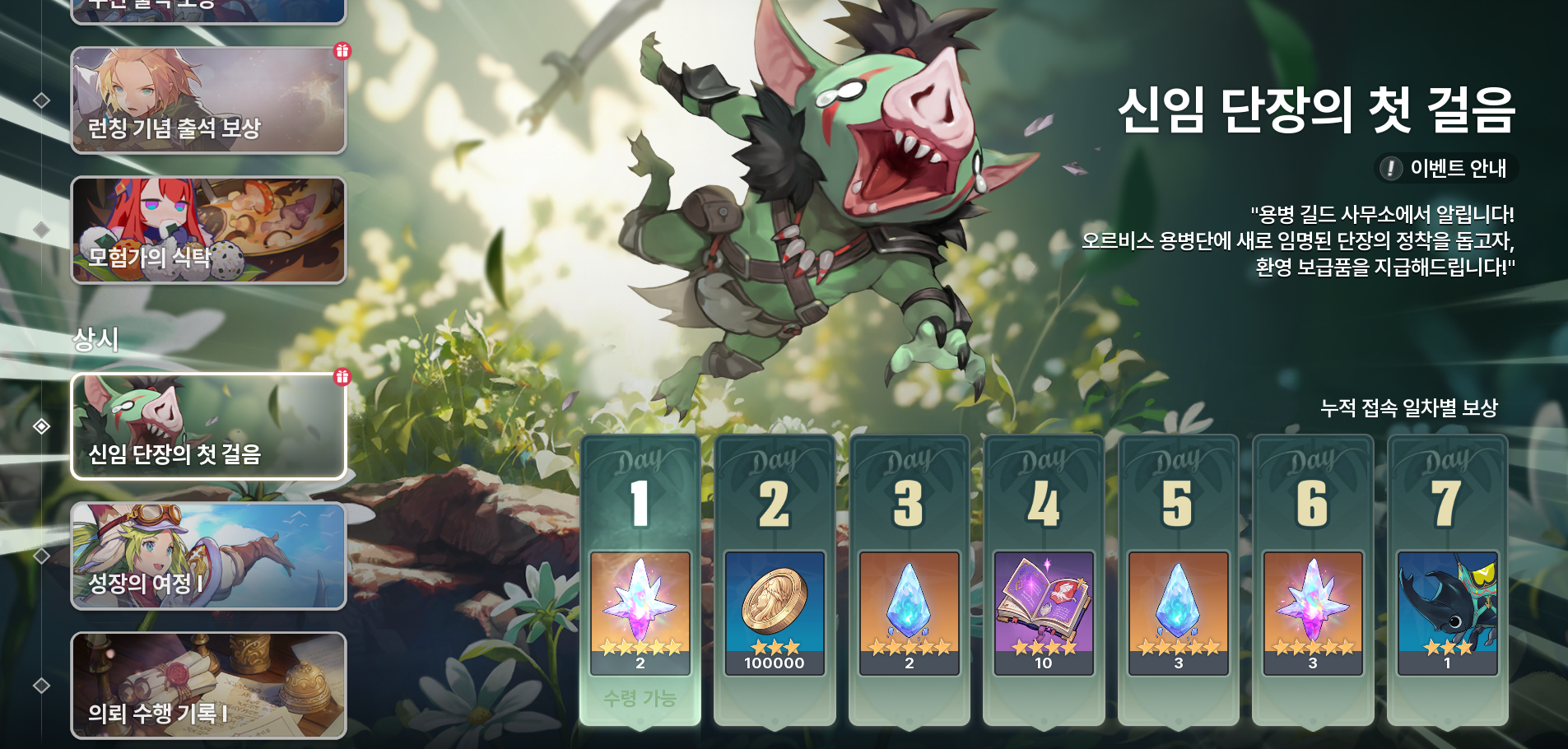 - 오르비스 대륙에서 처음 여행을 시작하는 모험가님들을 위한 7일 출석 이벤트!