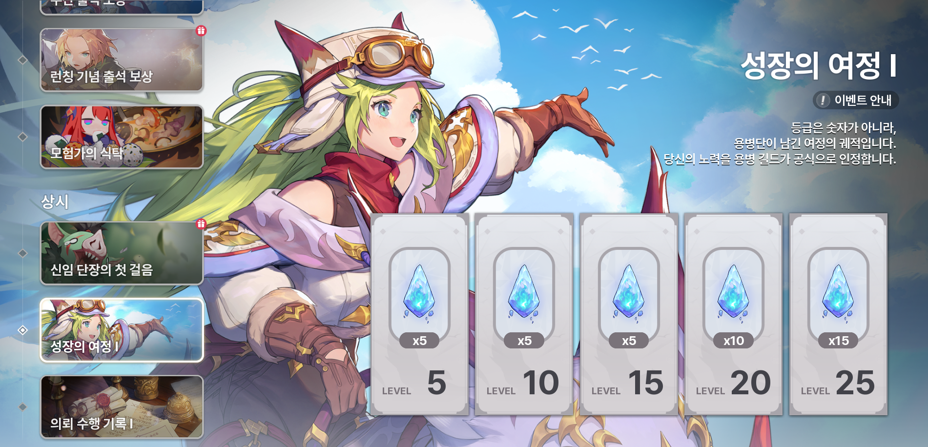 - 정해진 용병단 레벨을 달성할 때마다 보상을 받을 수 있어요!