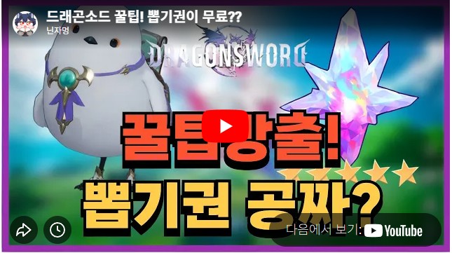 영상 제목 | 드래곤소드 꿀팁! 뽑기권이 무료?? | |