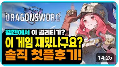 영상 제목 | 드래곤소드 : 신작 체험 - 결론 초 갓겜 | |