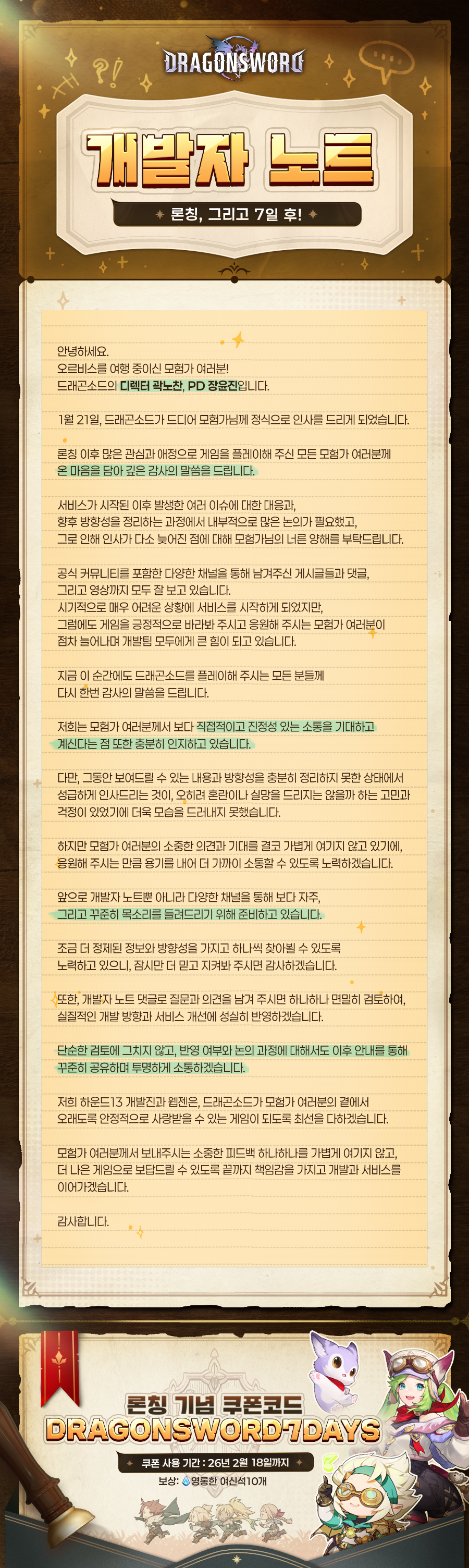 1월 21일, <드래곤소드> 정식 론칭 이후