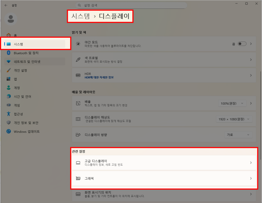4) 디스플레이 하단 관련 설정의 [그래픽] 클릭
