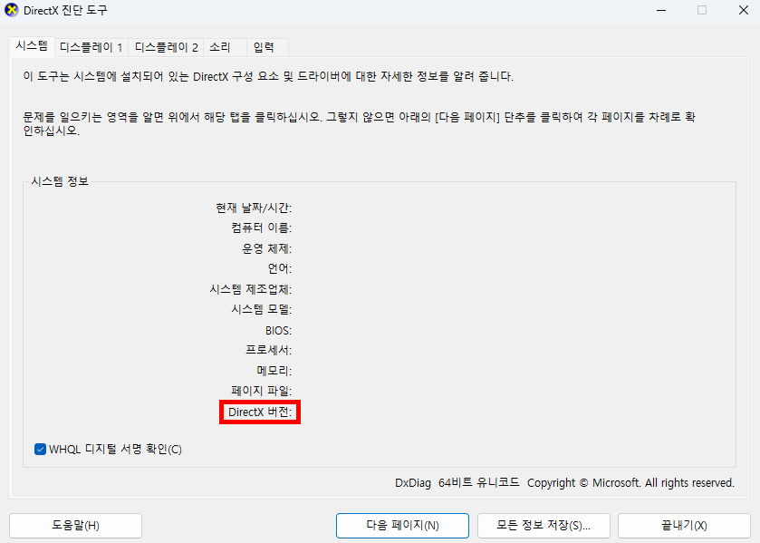 7. 그래픽카드 드라이버 및 DirectX를 최신 버전으로 업데이트합니다.
