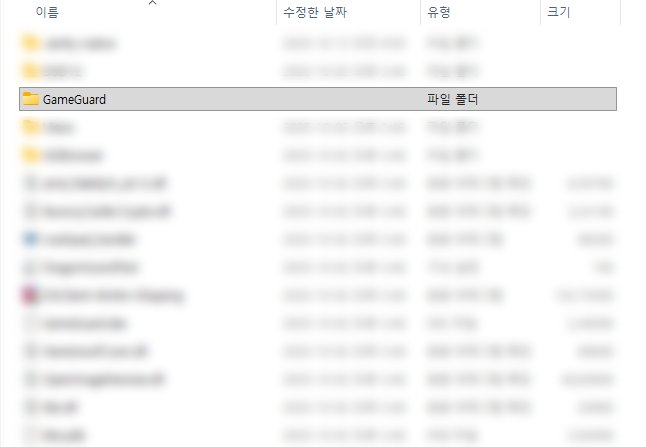 게임이 설치된 폴더 내 GameGuard 폴더를 삭제하여 게임가드를 재설치해 주세요.