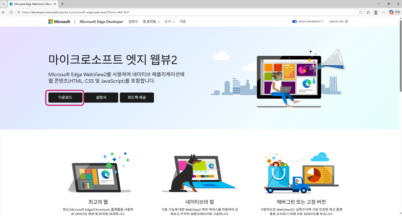 1. 개발사 홈페이지를 통한 WebView2 런타임 설치/업데이트