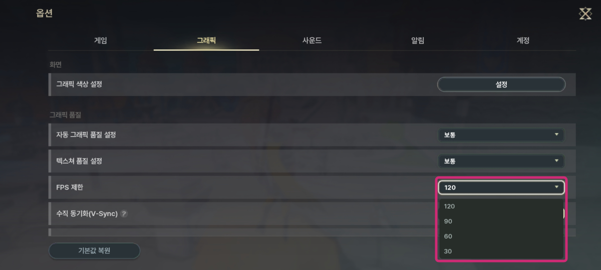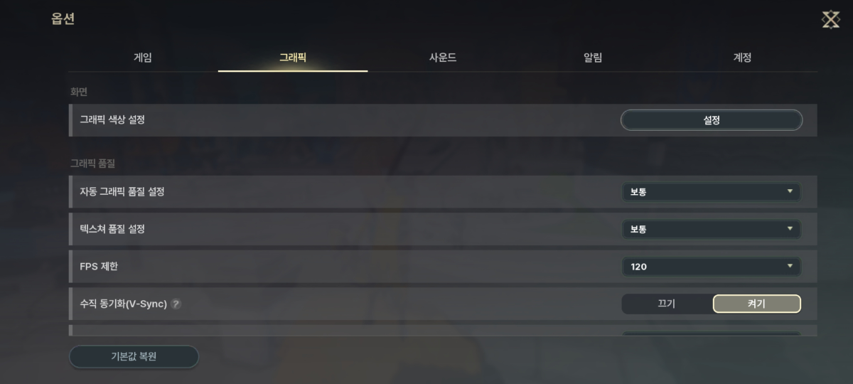 1. 게임 로그인 후 [ 옵션 → 그래픽 ] 터치