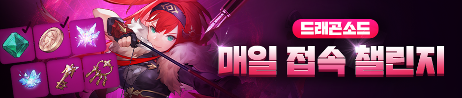 - 매일 접속 챌린지 이벤트는 드래곤소드 CBT에 참여하신 분들에 한하여 참여 가능합니다.