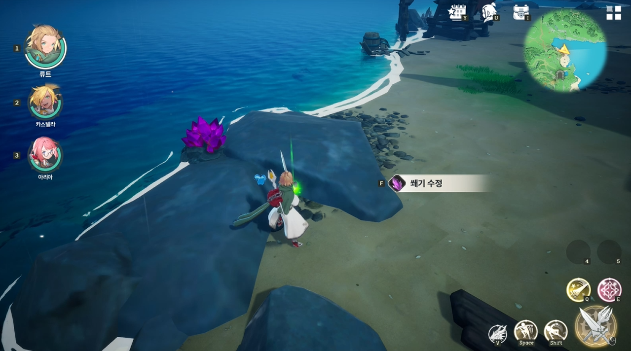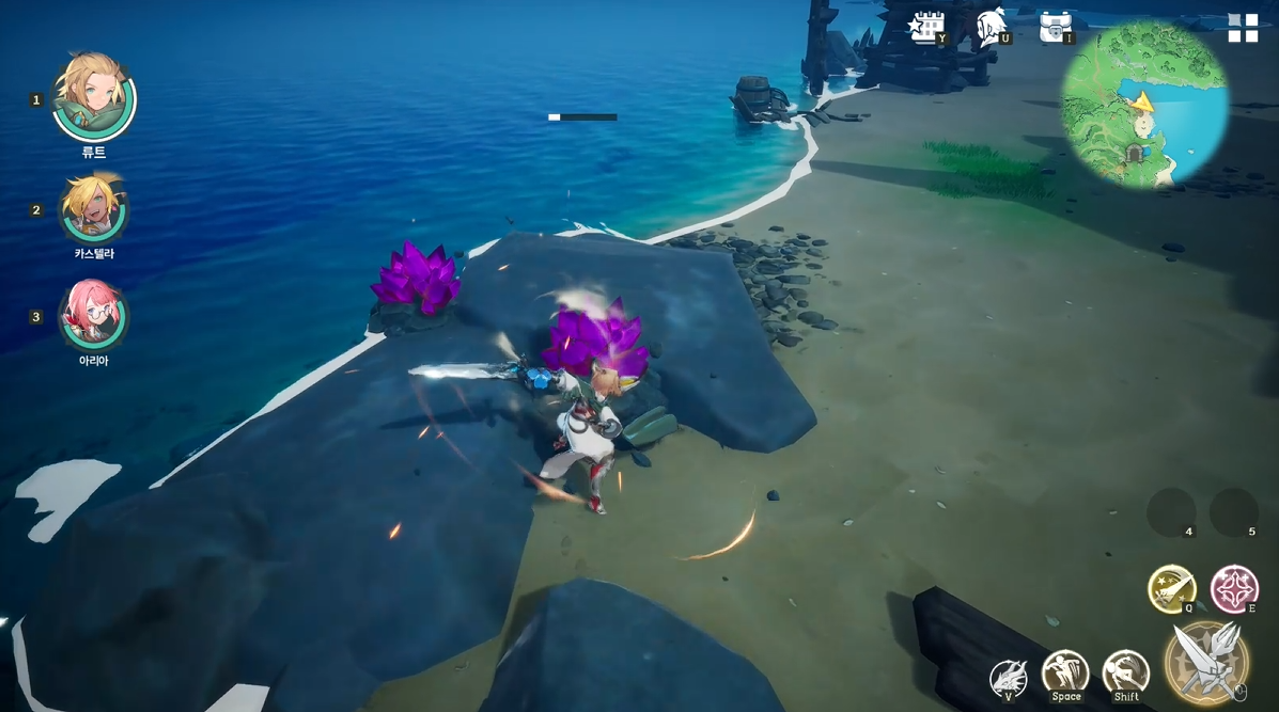 -월드 곳곳에 배치된 광석을 기본 공격 및 스킬로 타격하여 광물을 획득할 수 있습니다.