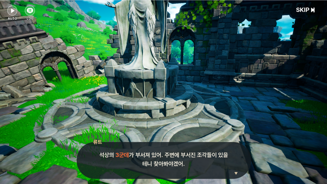 - 석상과 상호작용하면 부서진 조각의 개수를 확인할 수 있으며, 부서진 석상 주변에서 조각을 모아 석상을 복원할 수 있습니다.