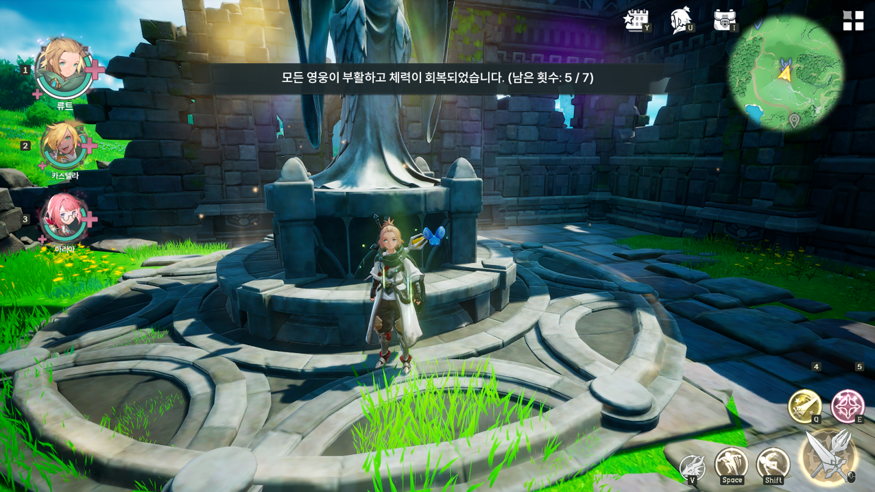 - 복원이 완료된 오르가나 석상에서 여신의 가호를 이용하면 전투 불능 상태의 영웅이 부활하고, 모든 영웅의 체력이 회복됩니다.