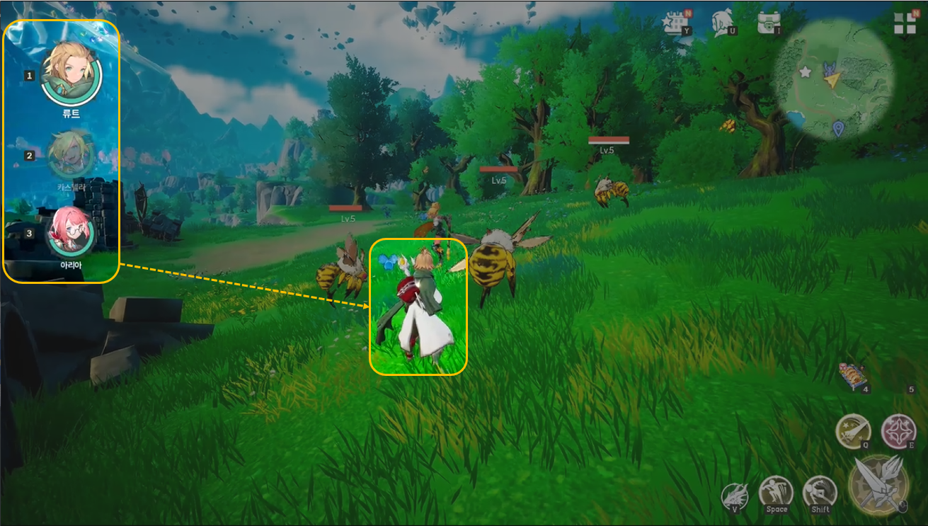 - 좌측 영웅 버튼(PC환경: 1,2,3 키)을 사용해 출전 영웅을 대기 중인 다른 영웅으로 교체할 수 있습니다.