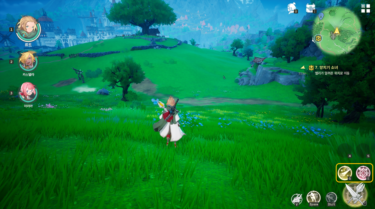 - 각 영웅은 두 종류의 액티브 스킬(PC환경: Q, E 키)을 보유합니다.