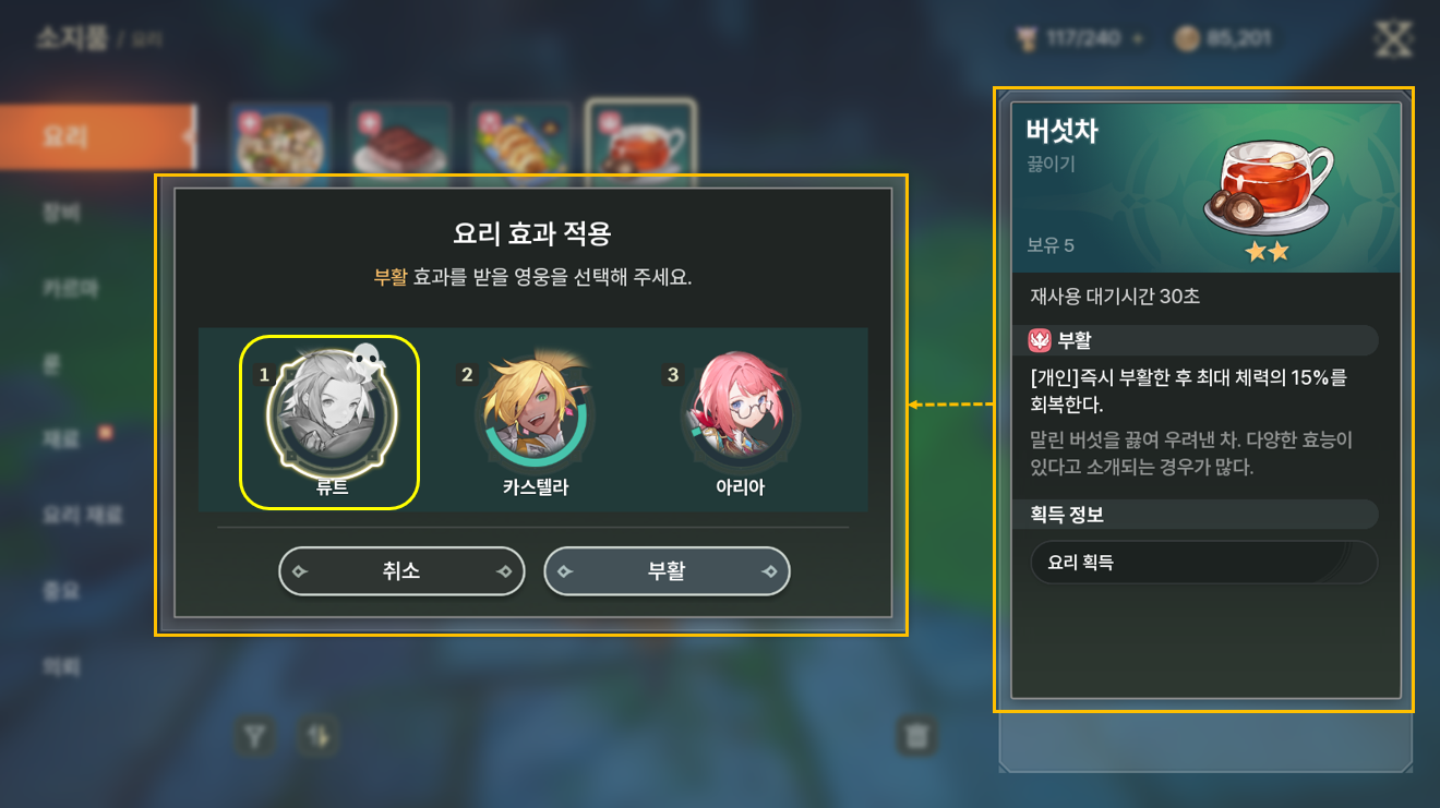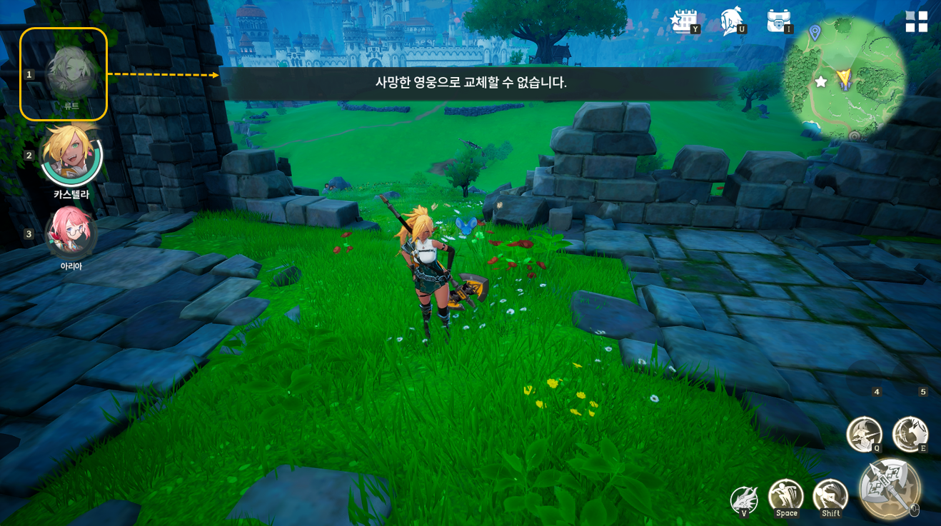 - 전투 중 체력이 모두 소모된 영웅은 사망하여, 더 이상 전투를 할 수 없습니다. - 사망한 영웅은 캐릭터 교체 및 태그 콤보 스킬 사용이 불가합니다. - 사망한 영웅은 부활 효과를 가진 요리를 사용하여 부활시킬 수 있습니다. - 활성화된 오르가나 여신의 석상과 상호 작용을 통해 사망한 모든 영웅을 부활시킬 수 있습니다.
