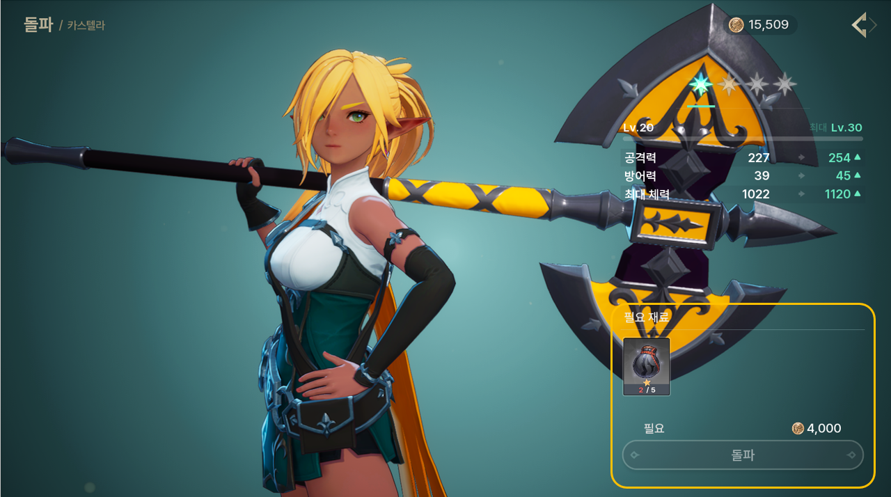 - 메인 메뉴 > 영웅 관리를 통해 보유하신 영웅을 성장시킬 수 있습니다.- 홈 화면의 영웅 관리 아이콘 (PC 환경: U키)를 통해 영웅 관리 화면으로 진입할 수 있습니다.돌파 - 최대 레벨에 도달한 영웅은 돌파를 통해 최대 레벨 한도를 확장할 수 있습니다. - 돌파를 진행하기 위해선 일정 단계의 용병단 등급과 영웅 돌파 재료가 요구됩니다.