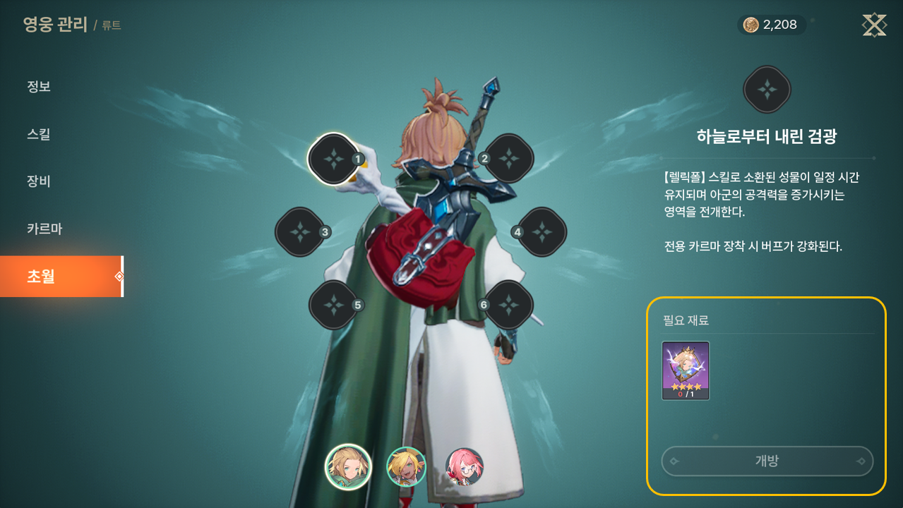 - 메인 메뉴 > 영웅 관리를 통해 보유하신 영웅을 성장시킬 수 있습니다.- 홈 화면의 영웅 관리 아이콘 (PC 환경: U 키)를 통해 영웅 관리 화면으로 진입할 수 있습니다.초월- 이미 보유한 영웅을 중복 소환하면 해당 영웅의 소울이 획득되며, 이는 영웅 초월의 재료로 사용됩니다.- 영웅 관리의 초월 탭에서 소울을 사용해 최대 6회까지 초월이 가능합니다.- 초월 시 스킬이 강화되거나, 추가 능력치를 획득합니다