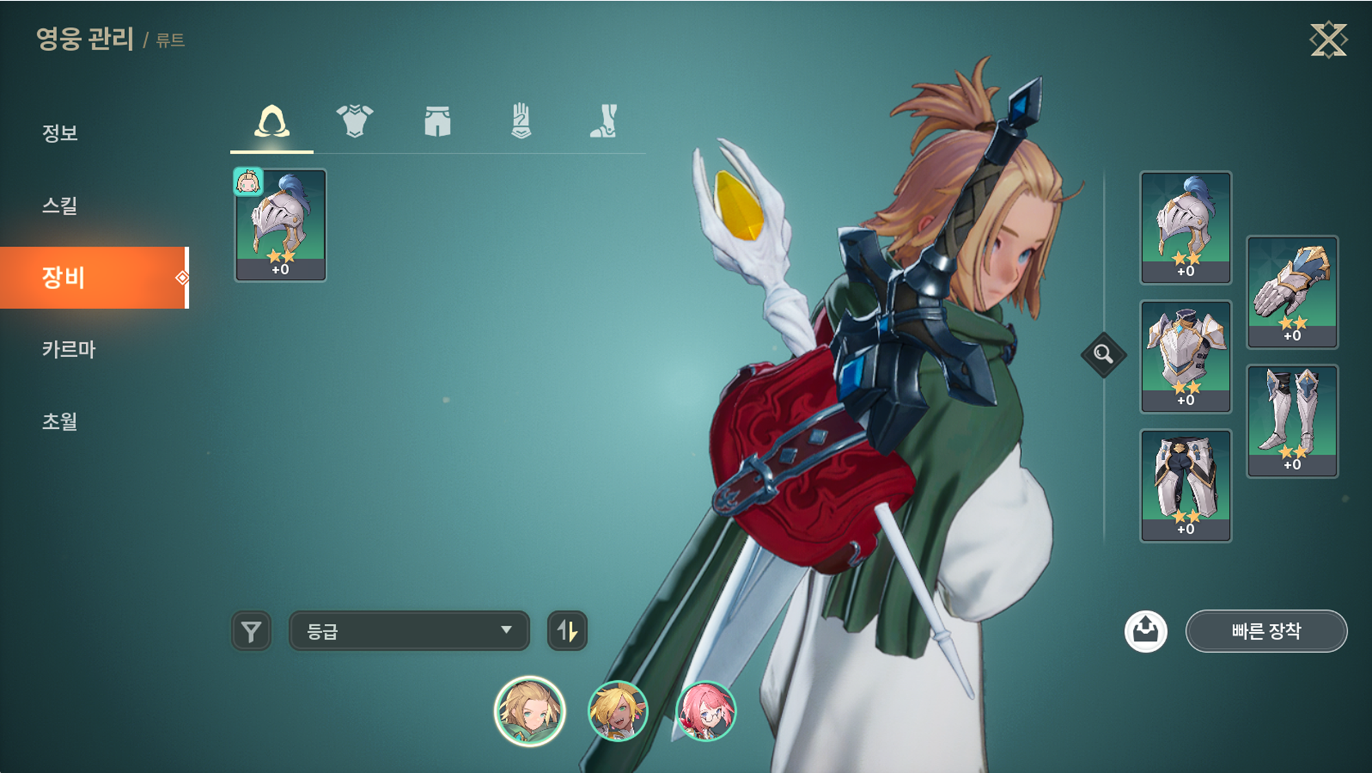 - 장비는 영웅 관리 화면에서 장착할 수 있습니다.