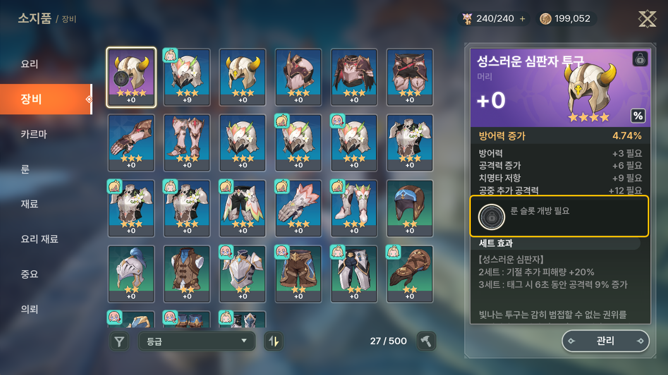 - 일부 장비에는 룬을 각인할 수 있는 슬롯이 있습니다.