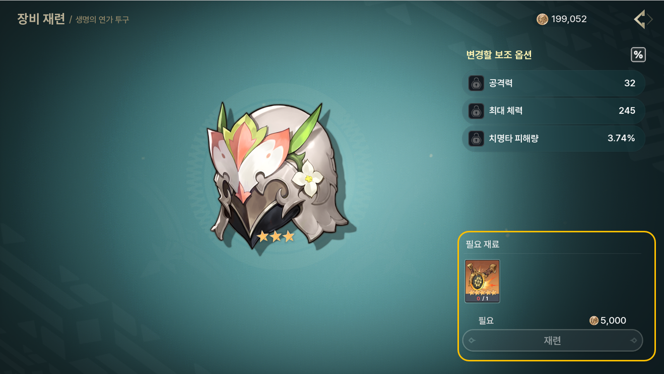 - 재련을 통해 장비의 보조 능력치를 변경할 수 있으며, 재련 시 형상 연마기가 요구됩니다.