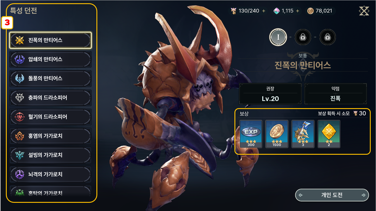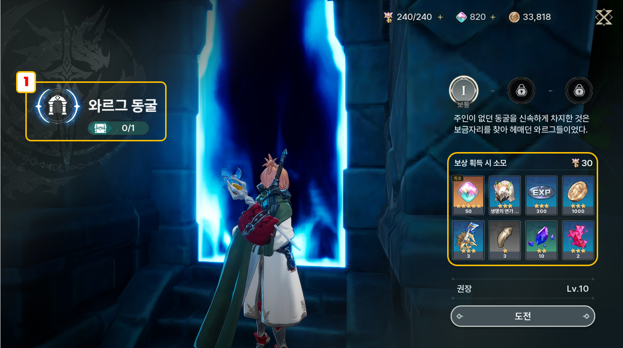 - 클리어 보상으로 카르마 돌파 재료 및 장비 제작 재료를 획득할 수 있습니다.