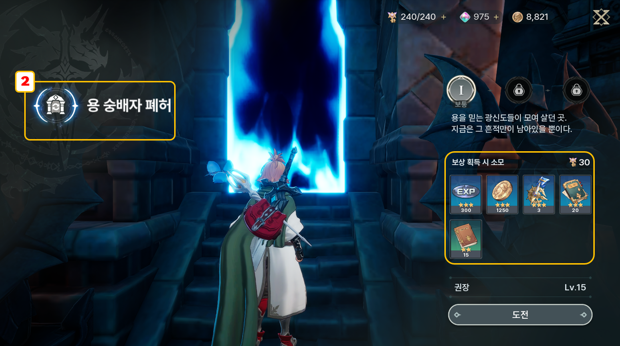 - 던전을 클리어하면 상위 난이도가 해금되며, 보상 수준도 함께 상승합니다.