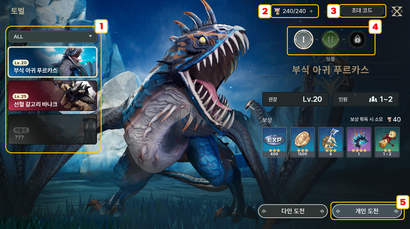 - 도전하고자 하는 보스 몬스터의 난이도를 설정할 수 있습니다.