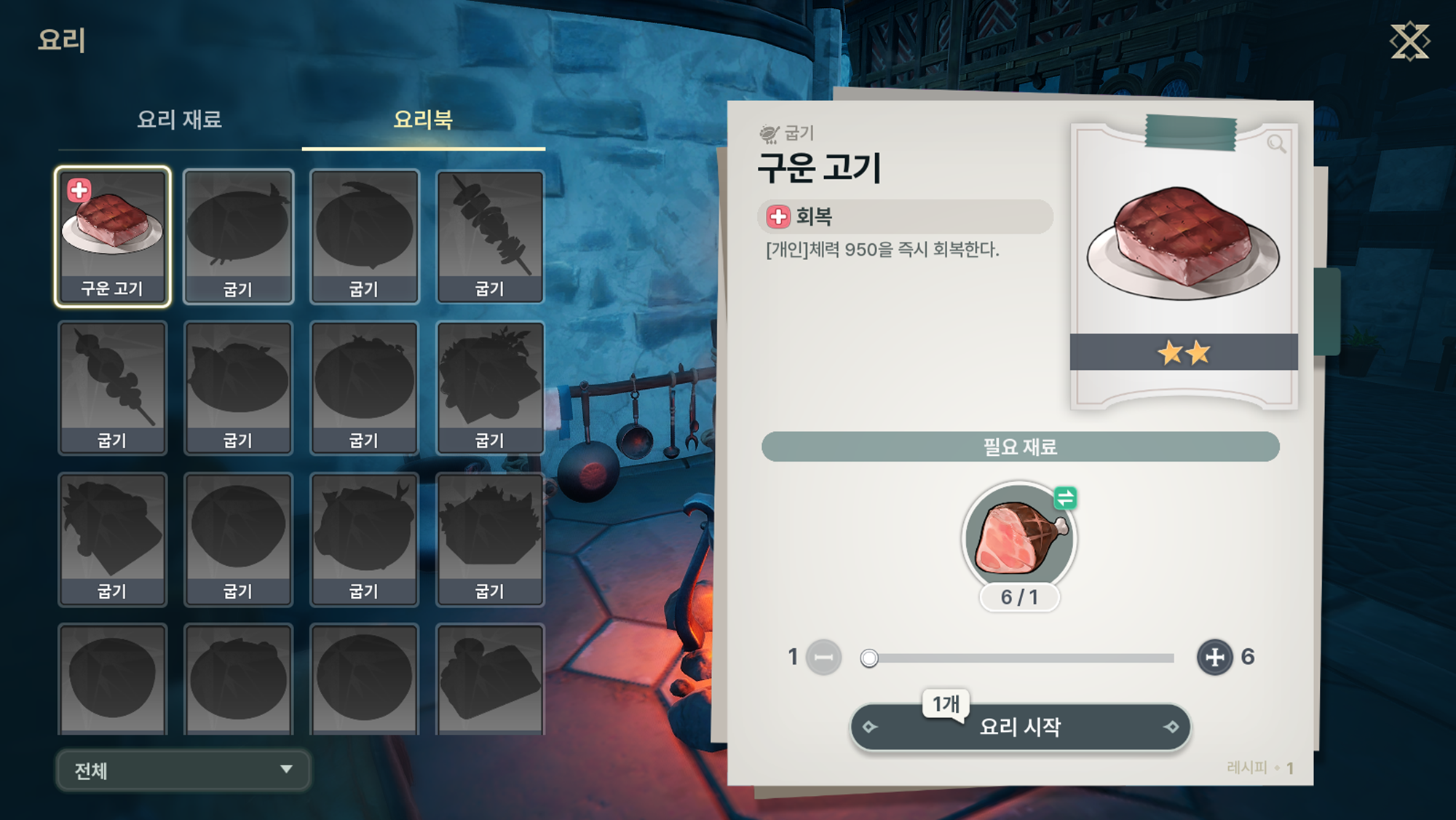 - 요리북에 등록된 요리는 대량으로 제작할 수 있습니다.