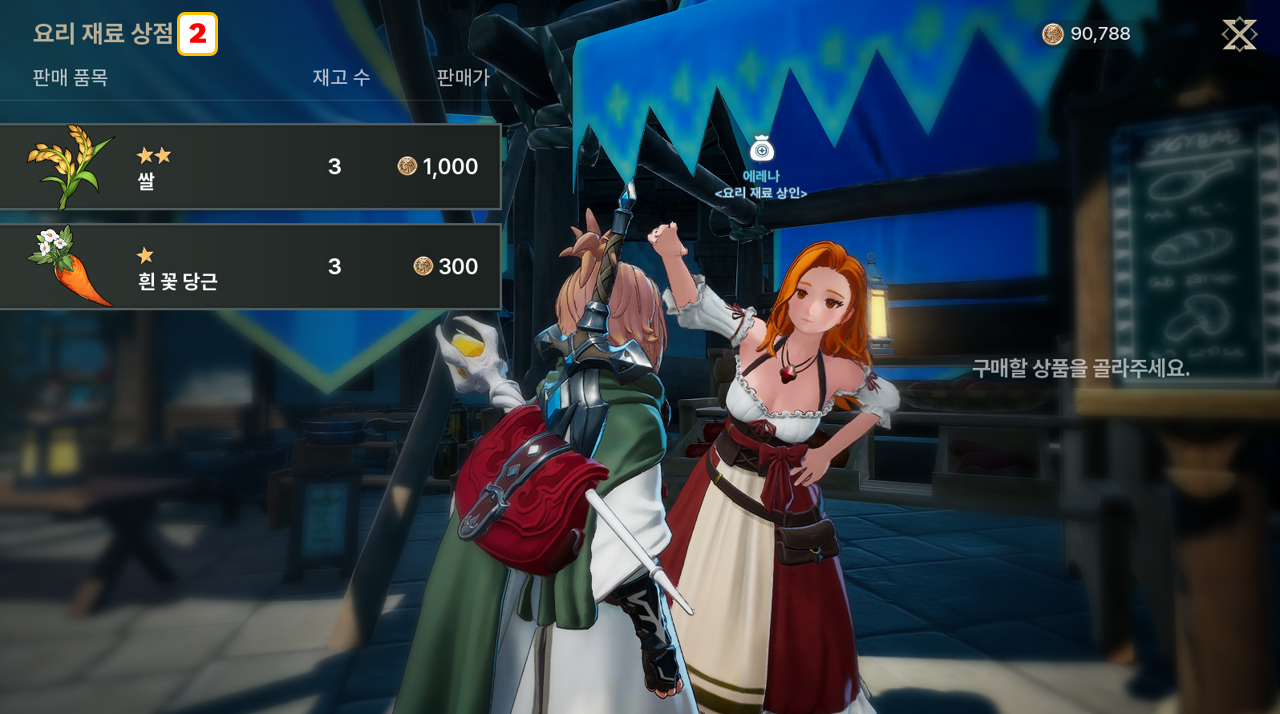 - 요리 재료를 골드로 구매할 수 있습니다.