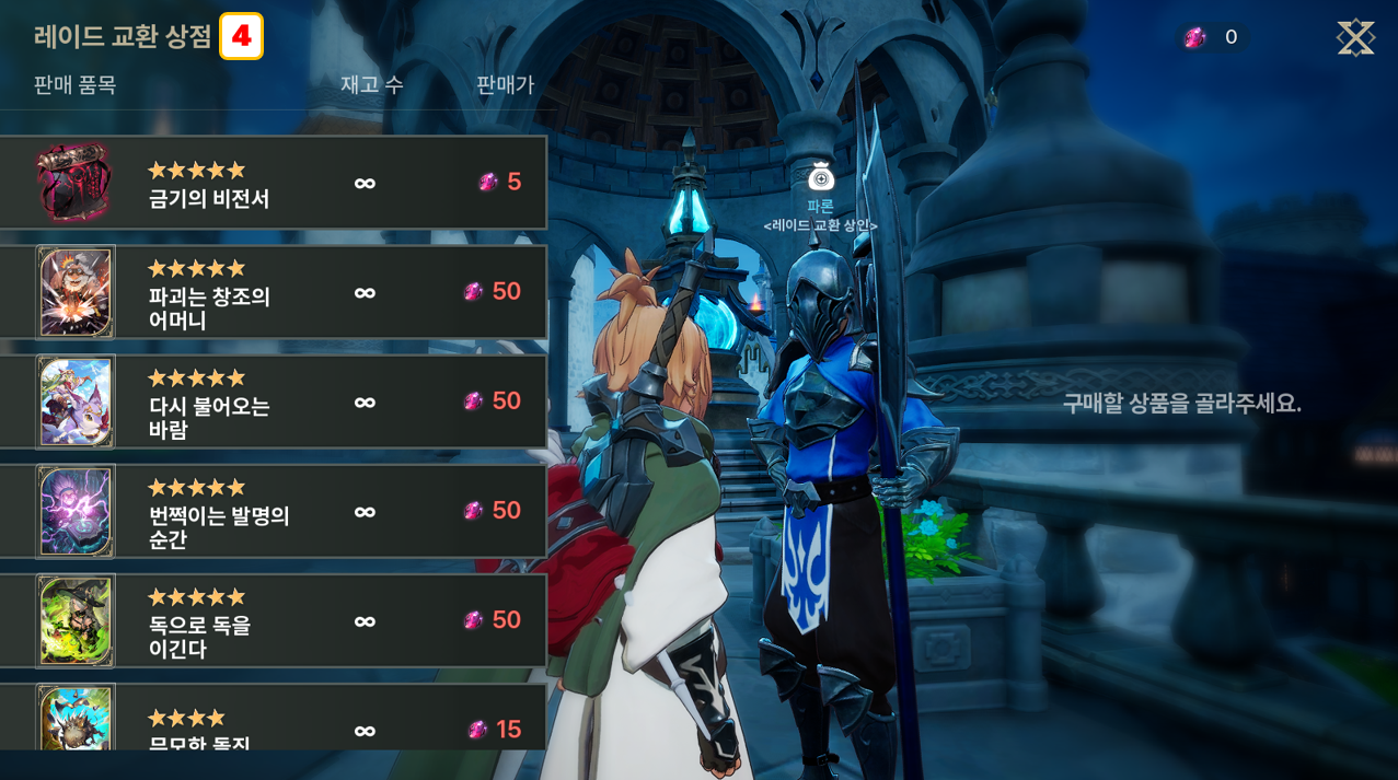- 영웅 성장 소재 및 장비 제작 재료를 골드로 구매할 수 있습니다.