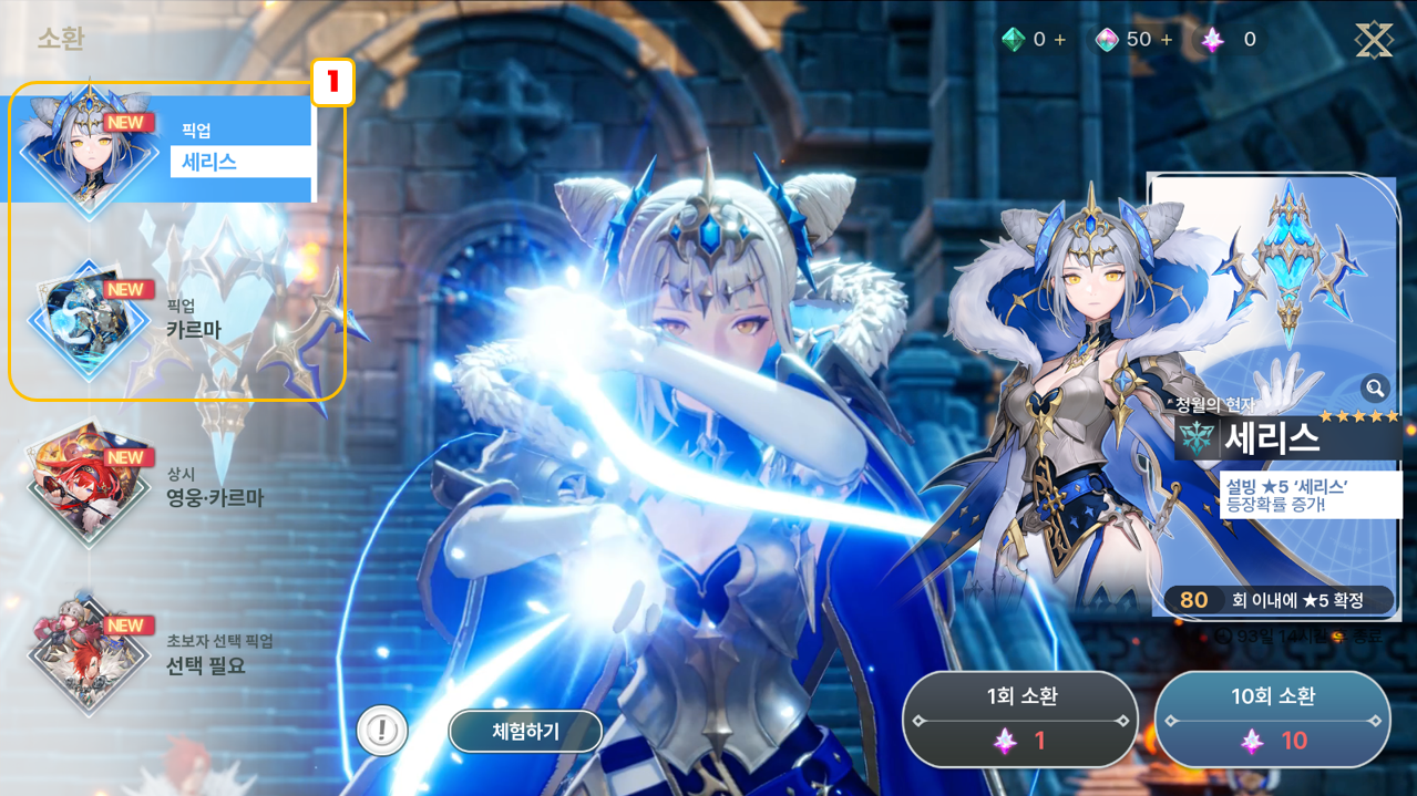 - 영롱한 여신석을 사용하여 소환을 진행할 수 있습니다.